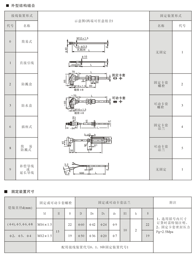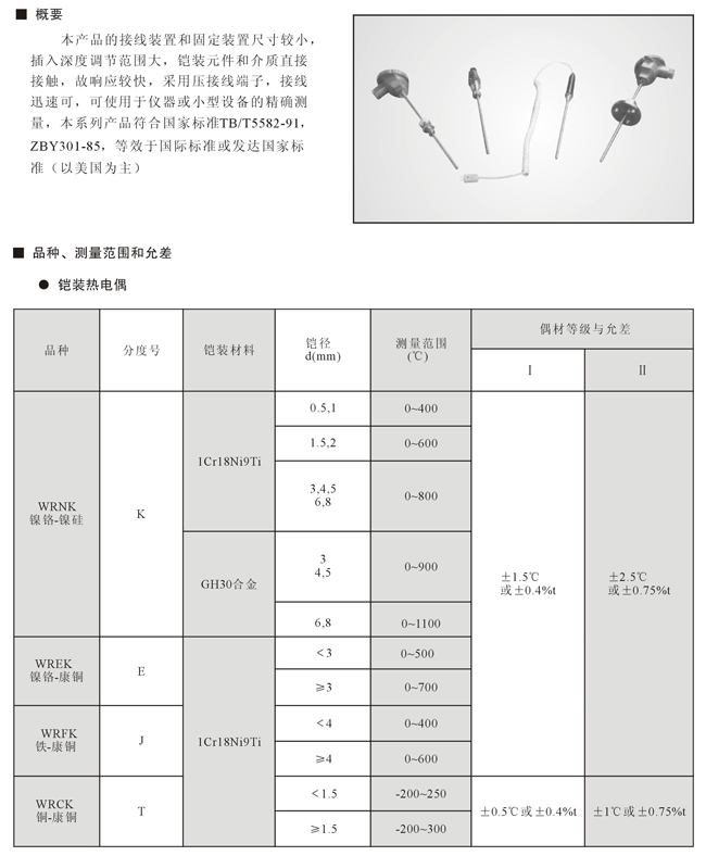 小型接线装置铠装热电偶、热电阻