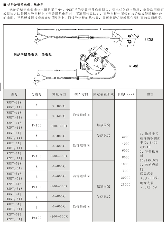 锅炉炉壁热电偶、热电阻