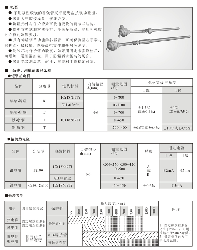 带补强管铠装热电偶、热电阻