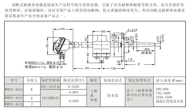 切断式耐磨热电偶