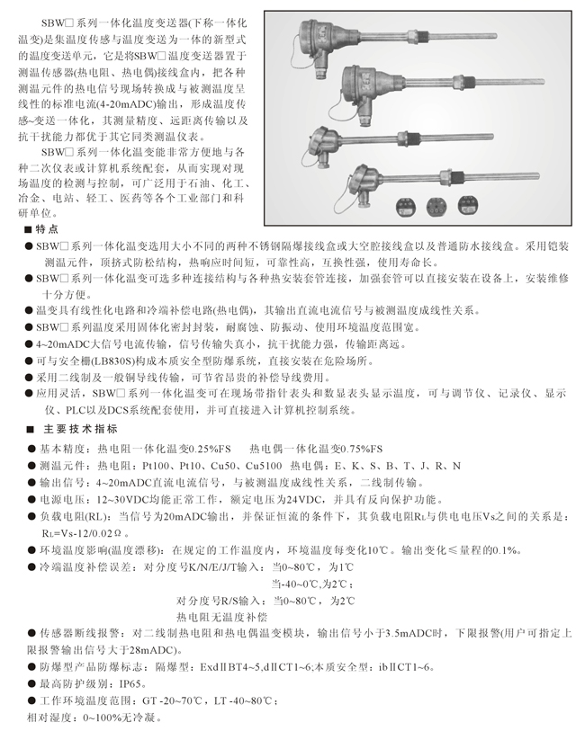 (不锈钢接线盒)隔爆型热电偶、热电阻一体化温度变送器