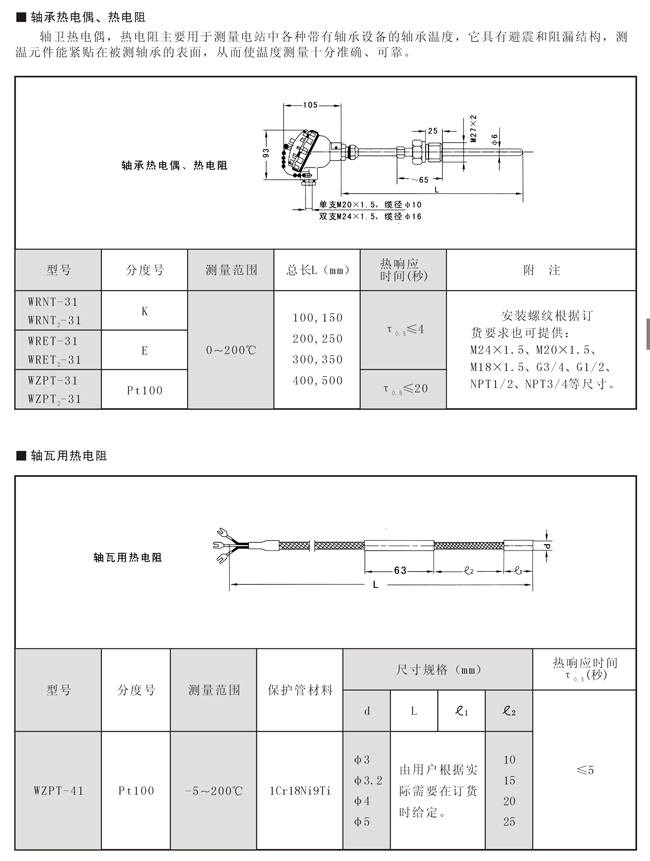 轴承热电偶、电机绕组铜电阻