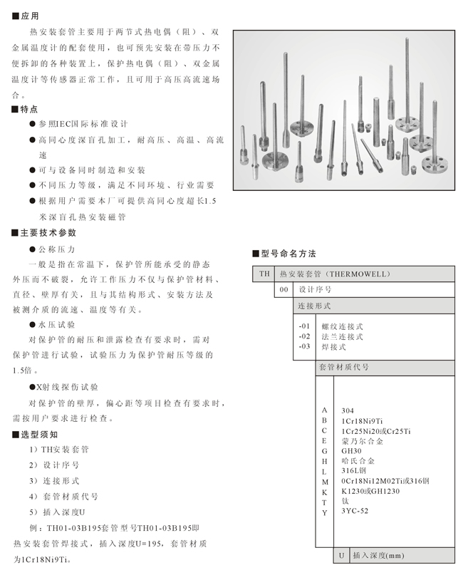 TH系列热安装套管(THERMOWELL)